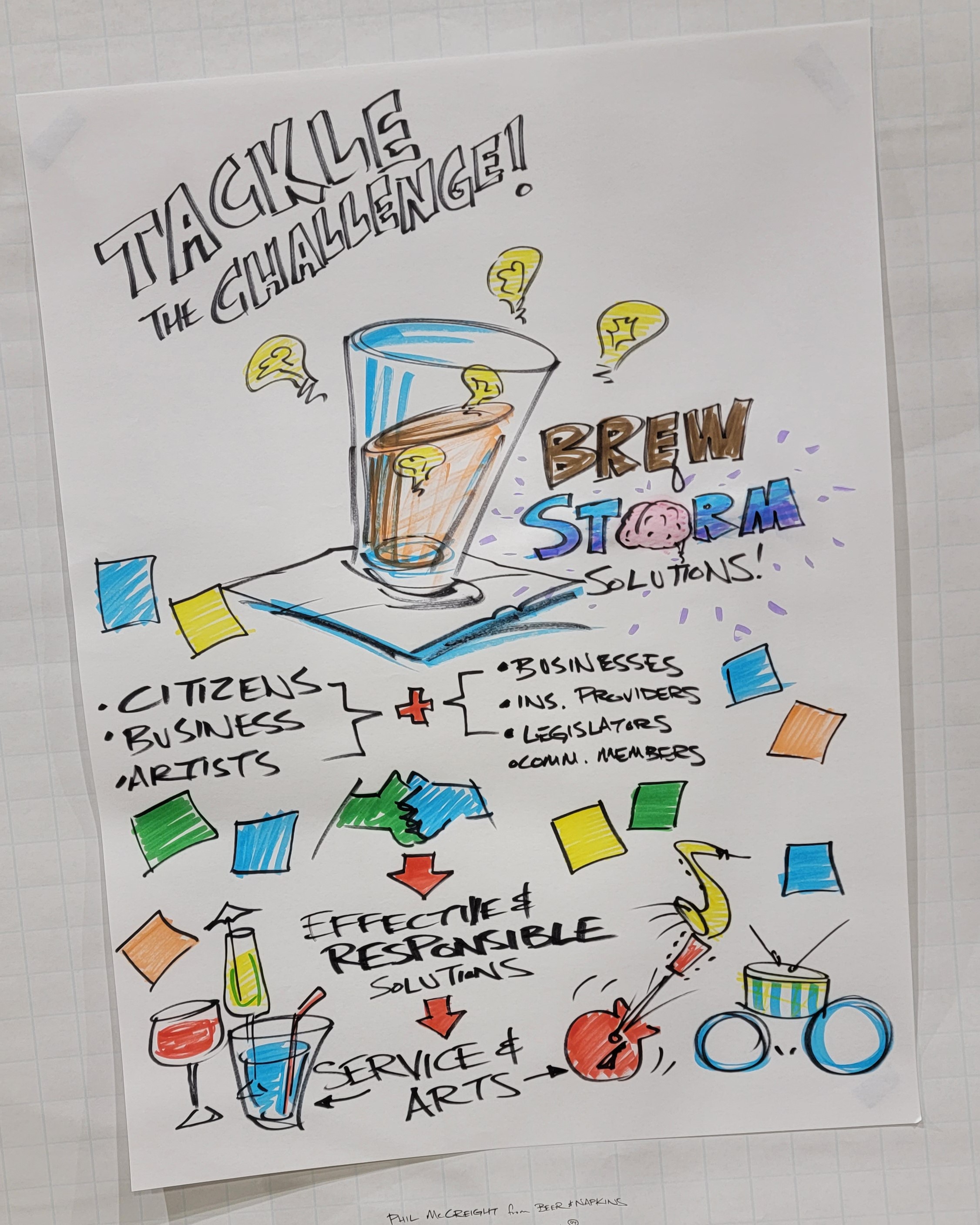 This was the “wicked” design challenge we tackled last night at @thinktankbrewlab in collaboration with the @scvenuecrisis team. A diverse team of concerned community members, musicians, creatives, insurance leaders, and venue owners came together to explore innovative ideas through our Brewstorming. The dialogue and learning alone was an incredible step forward.