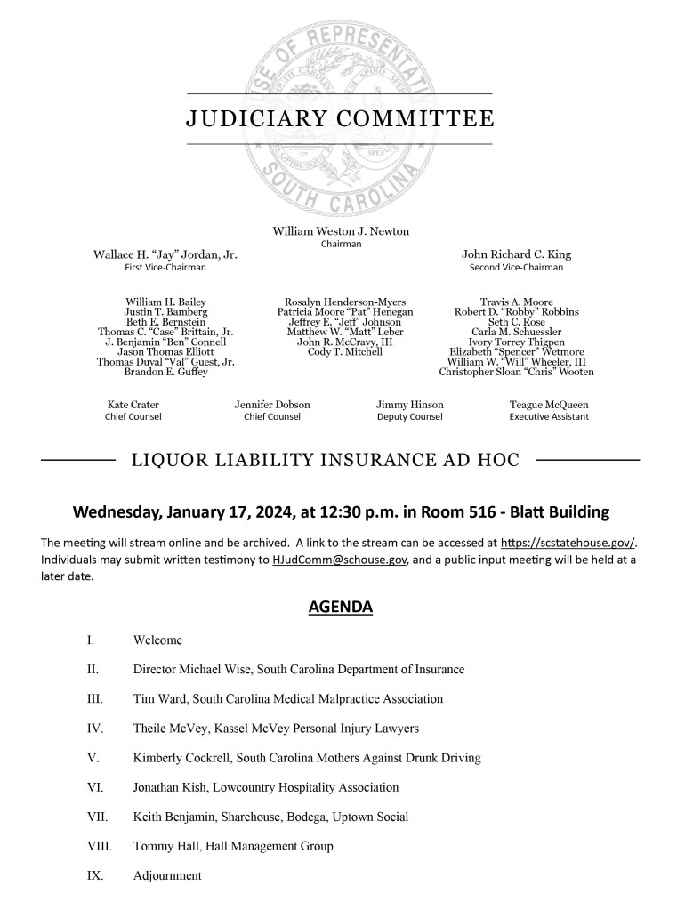 There’s a LIQUOR LIABILITY INSURANCE AD HOC meeting on