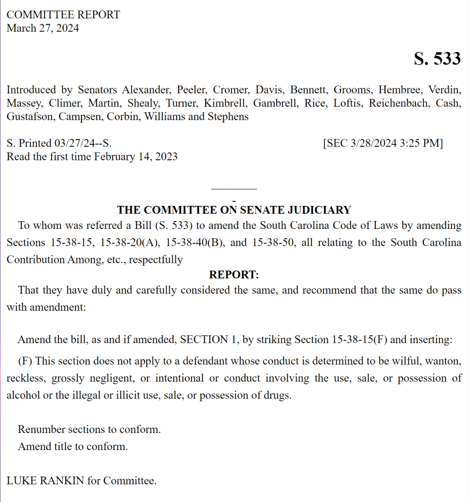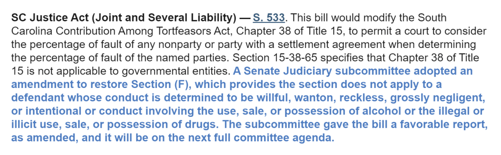 CONTACT YOUR LEGISLATORS AND ASK THEM TO SUPPORT THE SC JUSTICE ACT. S533 and REMOVE Section F.