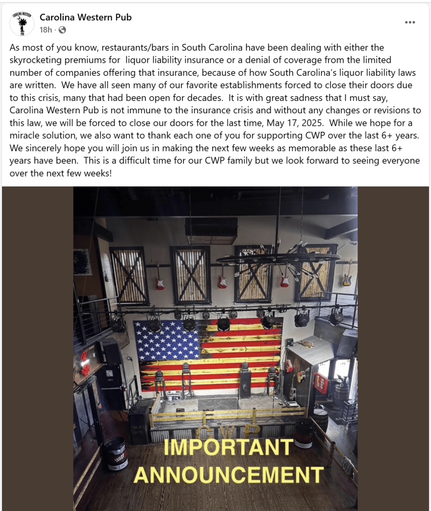 COLUMBIA, S.C. (WCSC) – Bars and restaurants across South Carolina have been struggling with skyrocketing insurance costs for years, forcing many of them to close because they can’t afford to stay open.
