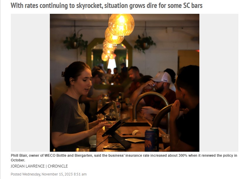 Greenville Journal – Skyrocketing insurance costs are closing bars, businesses. Will SC act in 2024?