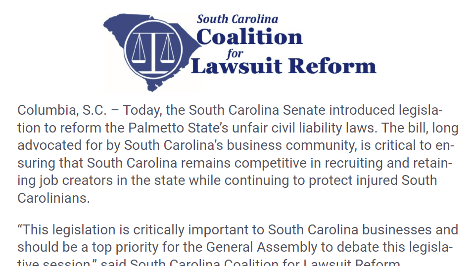 A pair of House and Senate bills filed in February would move South Carolina’s civil liability laws in the right direction and a foster a legal environment that is fairer to businesses and more conducive to economic growth.