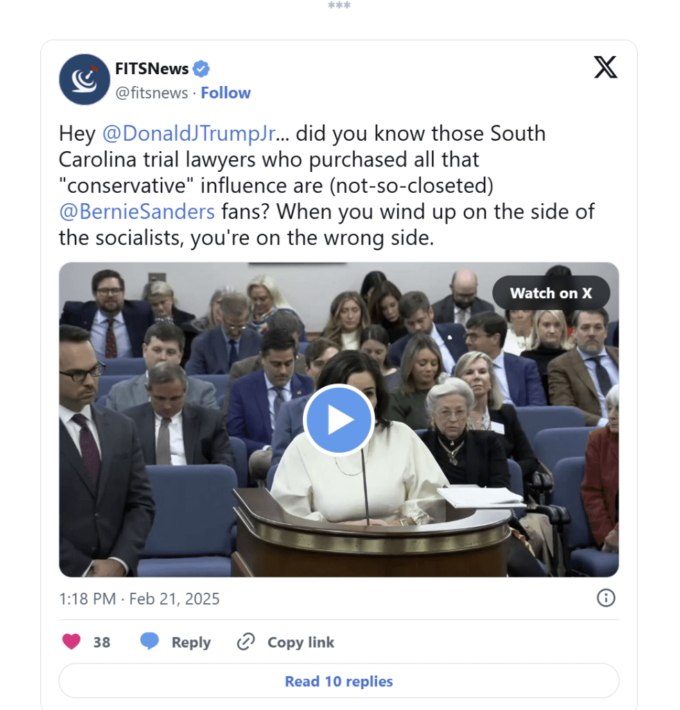 👉 Senator Shane Massey debated Senator Dick Harpooltian in favor of S.533. (the SC Justice Act) https://youtu.be/le9V0bEnv6k?feature=shared