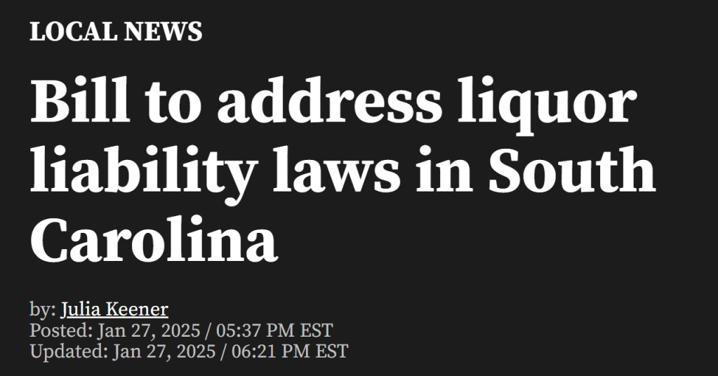Post & Courier (Subscription Required) They aren’t bars but, SC’s liquor liability law threatens Greenville businesses too